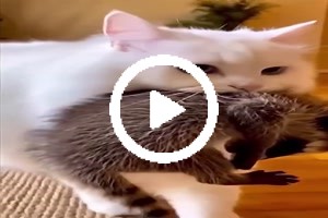 Katze rettet kleinen Waschbär