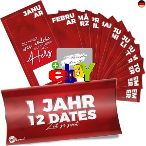 bei ebay gibt es 1 Jahr 12 Dates! 12 Monatskarten für 12 Dates, die du für jedes Date selber beschriften kannst. Das ist doch mal was Tolles. Zeit zu Zweit.